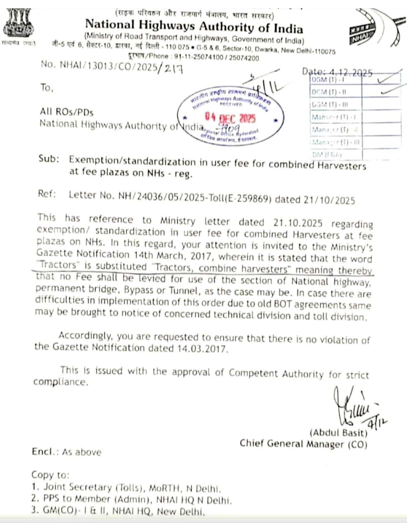 #किसानों को बड़ी राहत: NHAI ने ट्रैक्टर और कंबाइन हार्वेस्टर पर टोल फ्री रखने का आदेश जारी किया